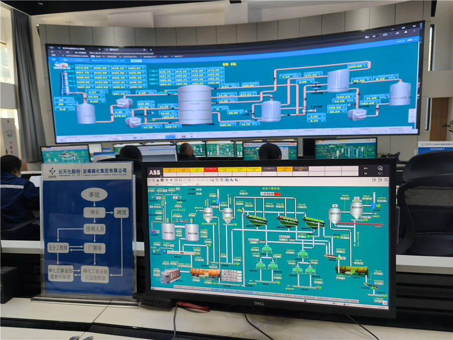 反应、造粒、干燥、筛分、冷却、成品筒仓……走进云天化磷化集团磷化工事业部生产控制中心,技术人员通过大屏就能高效控制80万吨/年硫酸装置、30万吨/年饲料级磷酸装置及50万吨/年饲料级磷酸钙盐装置,精准实现产品满负荷生产。通过成品发运仓库,3000吨磷酸一二钙产品正在有序地打包、装载,准备发往国内以及东南亚、澳洲、北美和欧洲等国际市场。