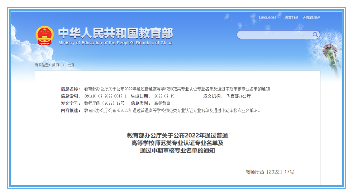 教育部办公厅关于公布2022年通过普通