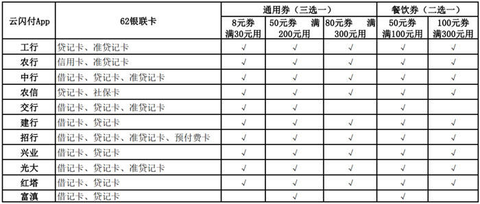 云闪付APP用户(绑定参与银行:工商银行、农行银行、中国银行、云南农信、交通银行、建设银行、招商银行、兴业银行、光大银行、红塔银行、富滇银行的指定62银联卡)