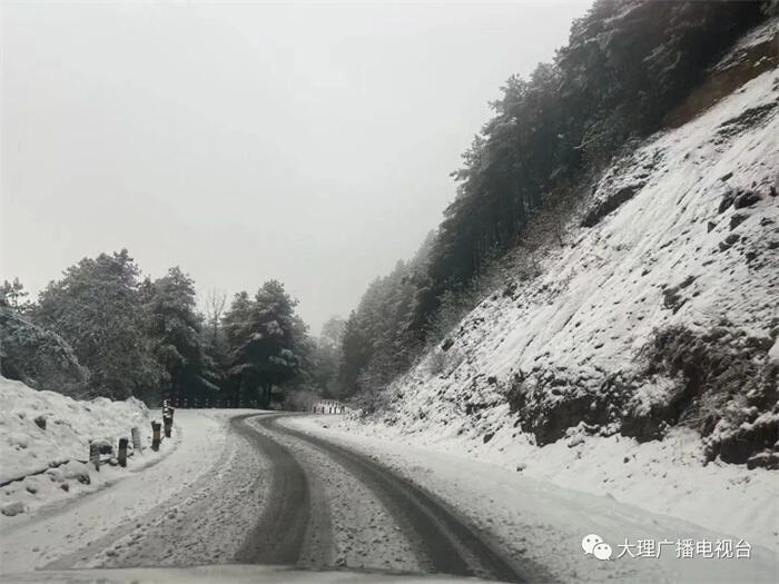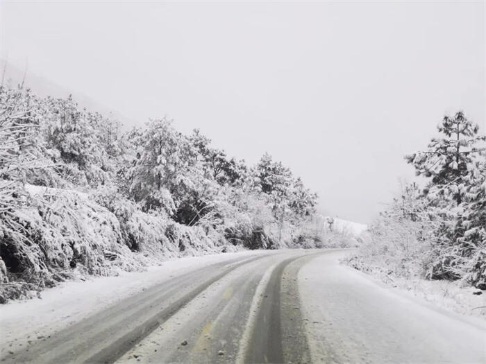 ▼通甸线K8至K36路段下雪,道路有积雪、湿滑,请过往驾驶人谨慎驾驶,减速慢行。