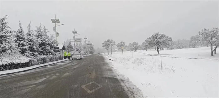 ▼西澜线K2315—K2325路段下雪,道路湿滑,过往驾驶人请谨慎驾驶,减速慢行。