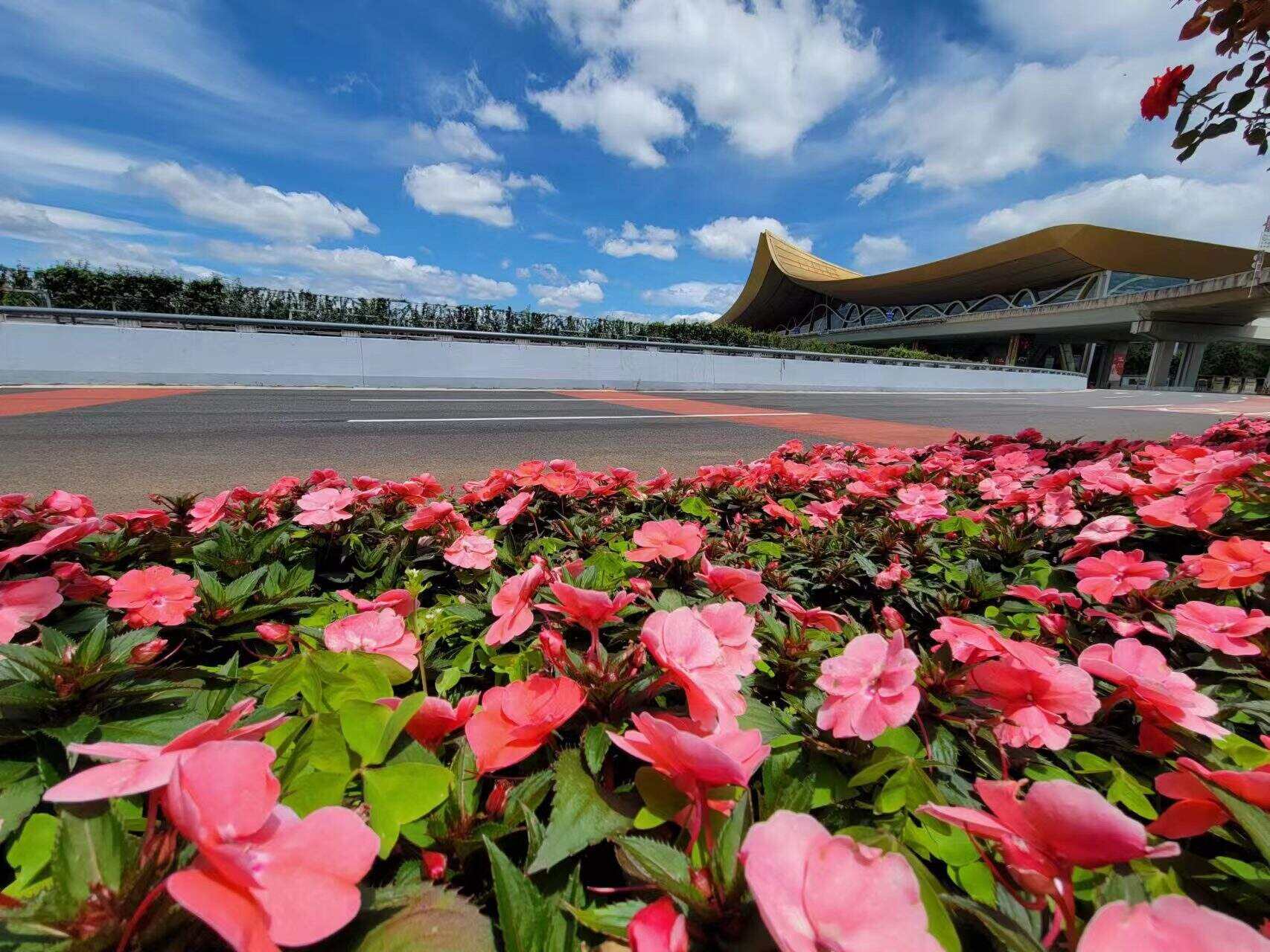 在绿美机场建设方面,今年来,昆明长水国际机场制定下发《昆明长水国际机场绿美机场建设实施方案》,建立定期调度机制、工作报告机制以及宣传工作机制,高效推进绿美机场建设。围绕“安全、生态、舒适、宜人”要求,对绿化进行梳理,持续加强现场管养,场区除对95万平方米绿化开展浇水管养外,对公务机楼C区陆侧道口植物绿化墙的绿植进行更换,对飞行区围界周边5米范围内、场区预留用地 5米范围内杂草进行清割,为旅客营造了良好的乘机环境。