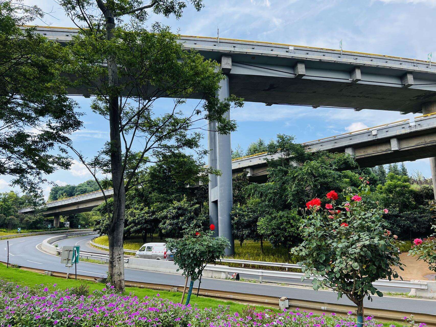 刘静感受到的变化得益于昆明市绿美公路的建设。今年来,昆玉高速公路的管养单位按照昆明市交通运输局绿美公路的建设要求,积极探索、试点先行,针对不同的适用场景采取不同的树种搭配、种植方式等进行大胆先试,例如,路中间隔离带色彩单调就增加玛格丽特、夹竹桃等色叶植物进行搭配;路两侧柏树下苗木长势不佳就栽植成活率强的迎春柳进行覆盖等。经过一段时间的建设,目前昆玉高速公路沿线焕然一新,道路两侧绿树、地被、花卉连点成线,各色花卉随季节更迭盛开,色彩斑斓,错落有致,与来往车流相互映衬,景色怡人。