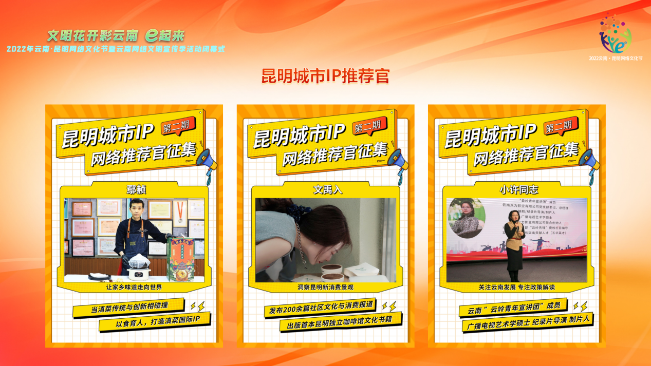 2022年云南·昆明网络文化节暨云南网络文明宣传季活动,以网络文明建设为根本、网络文化活动为载体、网络公益活动为抓手,打造出了一批影响深远的网络文化品牌,汇聚线上线下力量,共绘网上网下同心圆,实现了大流量澎湃正能量,为加快云南经济社会发展贡献了蓬勃网络力量!