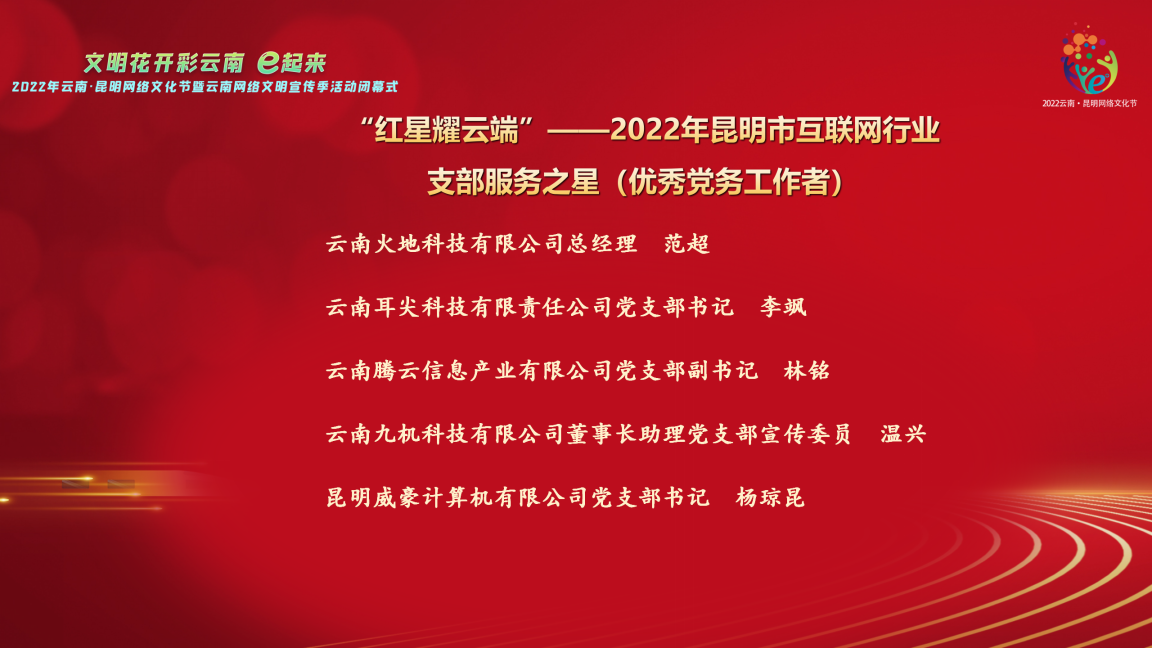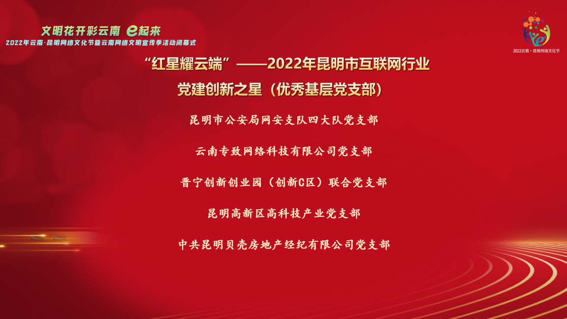 “红星耀云端”2022年昆明市互联网行业党建创新之星(优秀基层党支部)名单