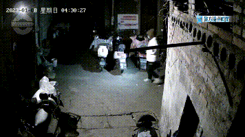 监控显示,当天凌晨四点半左右,一名穿着白色上衣,戴咖啡色帽子的男子,打着电筒走到李女士家楼下的巷子里,这里停着很多电动车。