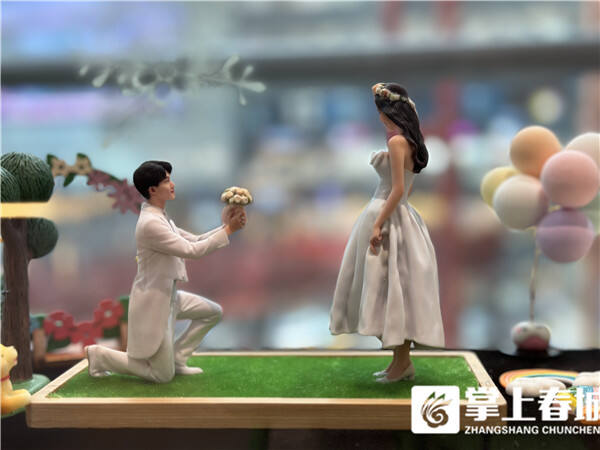 “我们店里有来求婚的顾客,有记录老人生日的顾客,还有记录特殊服装的顾客。”在刘育君的记忆里,令他印象最深的是合作的一个检疫站的集体婚礼。刘育君说,“他们把时间都奉献给了国家,也没有时间办自己的婚礼,后来在我们这里定制了真人手办,一起补办了集体婚礼,特别感谢这一群逆行者的付出和努力。”