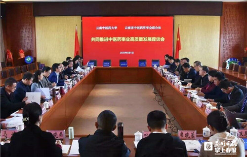 掌上春城讯 近日,云南中医药大学在呈贡校区与云南省中医药界学会联合体召开交流座谈会,就共同推进中医药事业高质量发展谋求良策。
