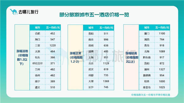 尽管五一预订火爆,依然存在一些可捡漏的目的地。据去哪儿统计,广东阳江、青海西宁、山西太原、甘肃兰州等目的地酒店预订尚未起量,广东东莞、贵州遵义、江苏徐州、广西南宁等地酒店价格并无明显增长。