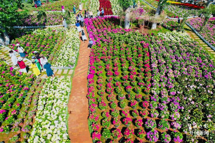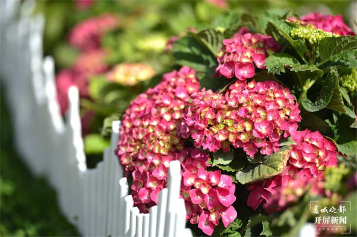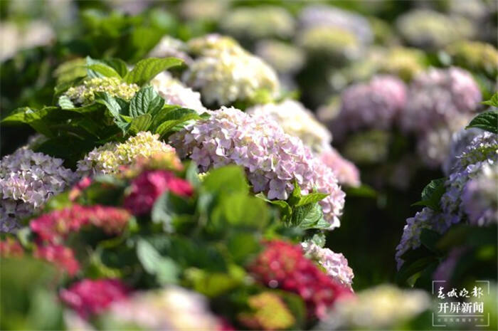 迎着滇池传来的阵阵海风,在游客们的拍照咔嚓声中,无尽夏、红舞、玫红妈妈、梦之蓝、魔幻红宝石、太阳神殿、小町、沙织小姐、星星糖、魔幻海洋、灵感、易多梦幻、中华木绣球……不同品种的绣球花开得热烈,“昆明无处不飞花,但像这样大的绣球花海,目前昆明仅此一家。”印象滇池负责人关先生介绍说。