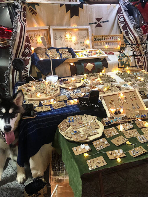 在某国企过着“朝九晚五”生活的小洋,内心当然是不愿放下打小的爱好,长年累月,家里已经堆满了饰品。下班后,小洋决定脱下西装革履的工作服,换上一身休闲装,带着狗子“七宝”开车出摊。摊位的布置小洋也会花些小心思,营造氛围感,比如定制背景布、玩偶、小灯串、挂饰台等都很精致。