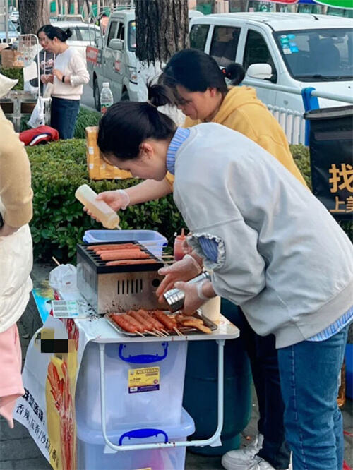 能摆摊的年轻人都是狠角色,他们甚至会把专业淋漓尽致运用在摆摊上,护士转行卖“无菌烤肠”,精准的花刀强迫症看了都说优雅。材料也很简单,准备好足够多淀粉肠,带着小料就可以出摊了,两人还创新了许多口味,芝士海苔、蜂蜜芥末、章鱼烧、辣条配肉丝等。“我们在昆明摆摊五个月了,周末生意好的话,工作日就到周边旅游,两个人一起工作互相有个照应,时间也很自由。”安安开心地说道。