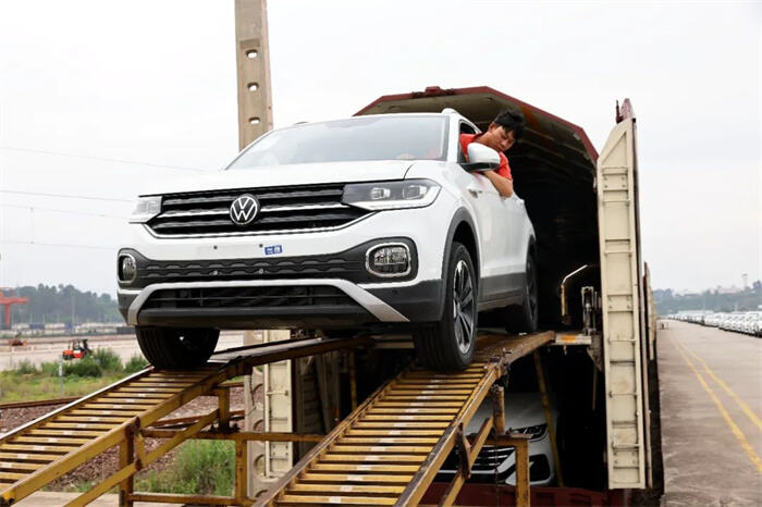 当天10时许,一列运输汽车的铁路专用货车精准对入桃花村站22道货位后,铁路工作人员陆续将261辆商品汽车开出,停至临近的桃花村铁路商品汽车物流基地内。