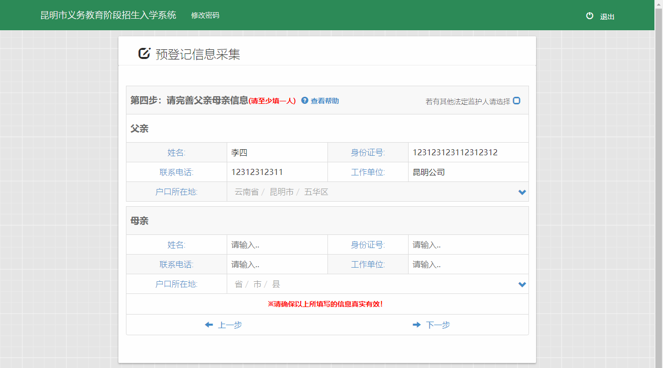 第四步,完善家长信息;