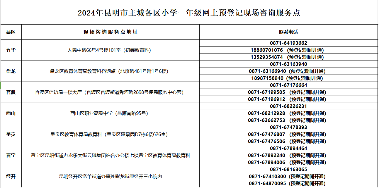 0871-67892240(预登记期间开通)