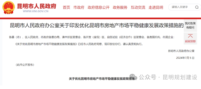 掌上春城讯 昆明市人民政府办公室印发了《关于优化昆明市房地产市场平稳健康发展政策措施的通知》,新规包含优化供给结构、加强项目规划服务、提升要素保障质效、推动存量住房去化等5个方面,共25条主要措施。