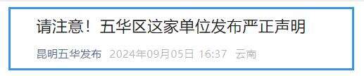 掌上春城讯 9月5日,昆明市五华区疾病预防控制中心发布严正声明,详情如下: