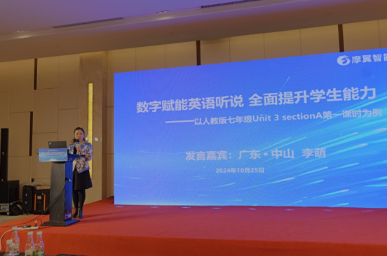 在课例说课环节,昆明市第十中学高级教师马蓉的《数字化赋能英语教学一一以人教版 新教材七年级上册Unit1听说课为例》和原广东省中山市九年一贯制公办学校校长李萌的《数字赋能英语听说全面提升学生能力》,分别展示了数字化教学在提升英语听说能力方面的创新应用,为与会者提供了宝贵的教学实践案例和启发。