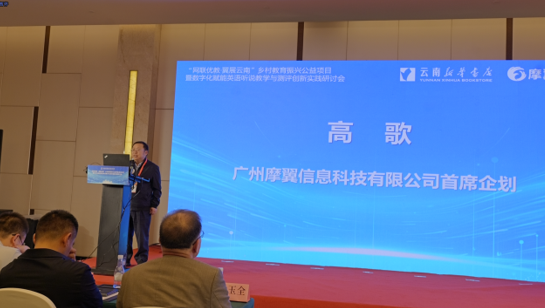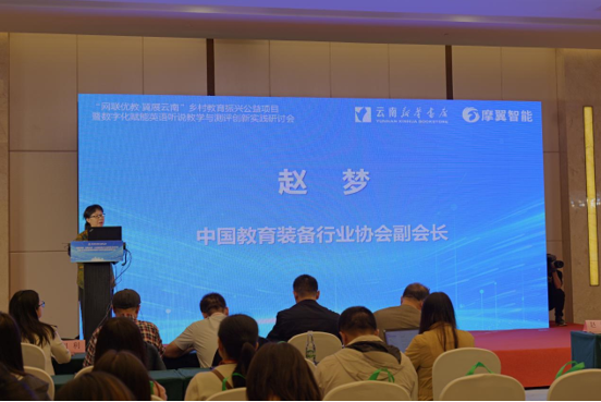 作为此次活动的指导单位,中国教育装备行业协会副会长赵梦表示,当前,教育数字化转型的重点在于以数字化创新实践促进教育领域综合改革和创新,推动教育高质量发展,实现教育公平。在云南省启动“网联优教·翼展云南’乡村教育振兴公益项目,积极探索先进数字技术与新资源在云南省中小学英语教学中的深度融合,助力云南省广大欠发达地区基础外语教育的数字化转型和优质均衡发展,让每一个云南学子都能享受到公平、优质的教育资源。她介绍,中国网络社会组织联合会、教育部教育技术与资源发展中心于2019年联合启动了“网联优教”教育信息化公益项目,为湖南、贵州、四川等省的偏远地区教育改善做出贡献。同时,她对云南新华书店与广州摩翼的战略合作表示热烈祝贺。