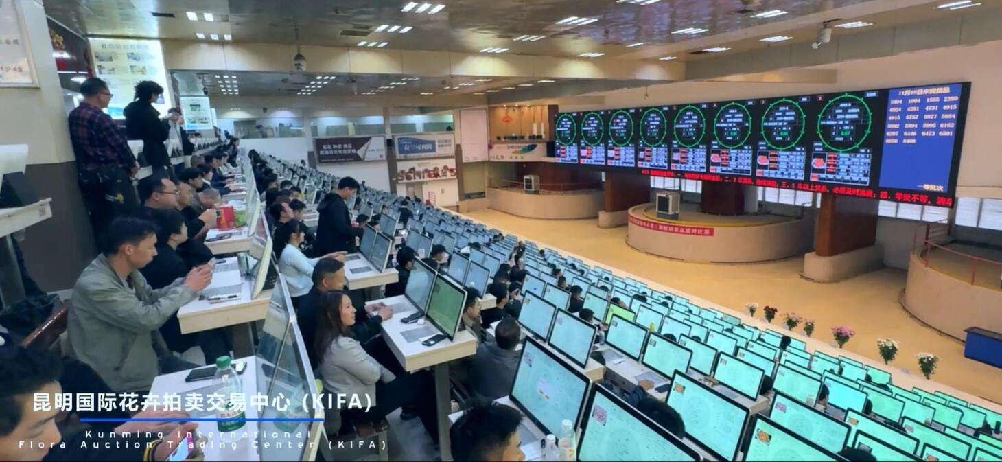 下午3点,花拍中心内两个拍卖大厅的14口交易大钟不断跳动,900个交易席位座无虚席。20多年前,泰国清莱府清莱市代表团嘉宾纳隆萨·登萨坤第一次到访昆明,花拍中心也才刚刚创建。2024年,花拍中心已成为亚洲第一、世界第二的花卉拍卖市场。目前有40多个品类、3000多个品种的鲜切花通过KIFA拍卖交易进入中国各大、中城市和泰国、日本、新加坡、俄罗斯、澳大利亚等40多个国家和地区。