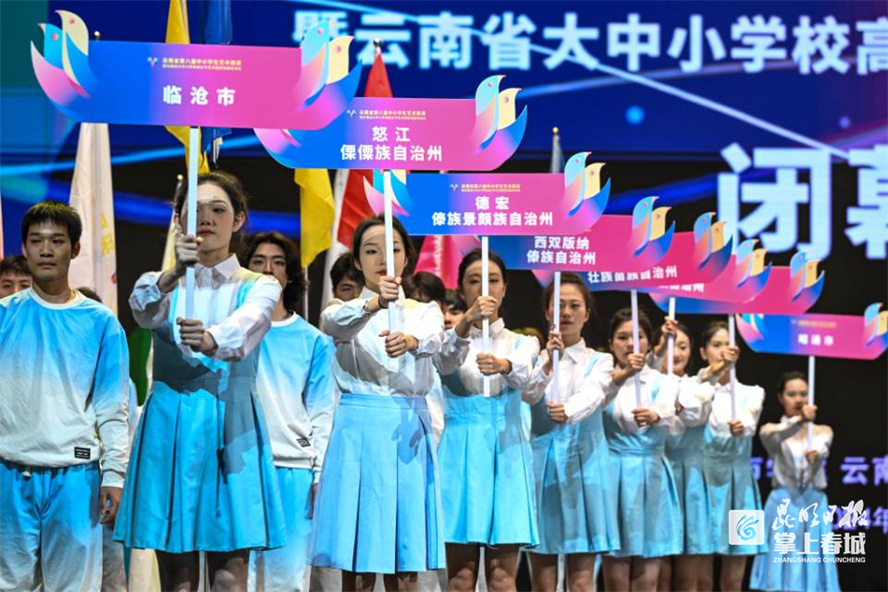 掌上春城讯 11月28日,云南省第八届中小学生艺术展演暨云南省大中小学校高水平艺术团现场展演活动闭幕式在云南省大剧院举行。本届展演以“绽放艺术风采、激发强国力量”为主题,今年6月正式启动,历时五个多月,覆盖16个州市,参与师生多达15万人次,共收到艺术表演类1365个、作品7654幅、优秀成果381个。