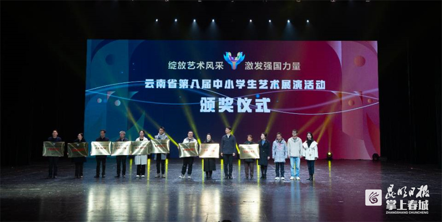 闭幕式中还分别为云南省第八届中小学生艺术展演展览活动小学组、中学组一等奖作品及优秀组织奖颁奖。