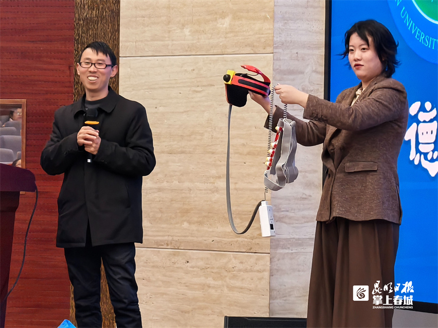 论坛展示的穿戴式智能推拿宝,吸引了不少人的目光。该设备是邰先桃教授领衔团队的应用研究成果,通过为患儿佩戴智能化推拿设备,智能化生成针对性的穴位推拿模式,实现对患脑瘫等基础性疾病儿童的康复治疗,该科研成果2022年荣获云南省科技进步二等奖。目前,上海一家企业已经与学校达成科技成果转化意向,该公司负责人表示,该产品在脑瘫儿童治疗方面已经达到国内先进水平,非常看好市场前景。