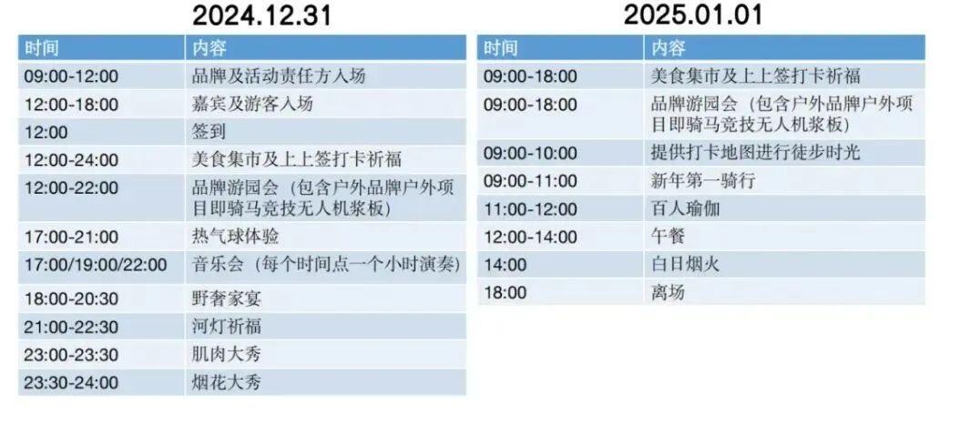 新年第一跑、百人瑜伽、自日焰火、马术体验、徒步打卡
