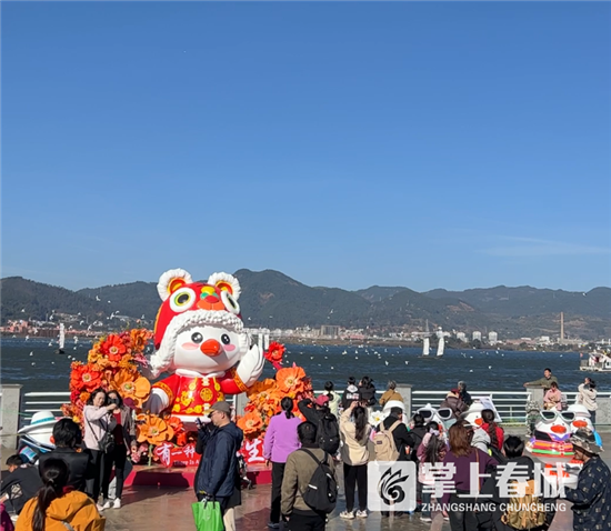 春节期间,度假区“观鸥季”推出了多项主题活动。“鸥YE”观鸥艺术主题装置在海埂大坝精彩亮相:27只代表云南26个世居民族的红嘴鸥形象艺术装置吸引了无数游客驻足打卡,成为春节期间的一大亮点。
