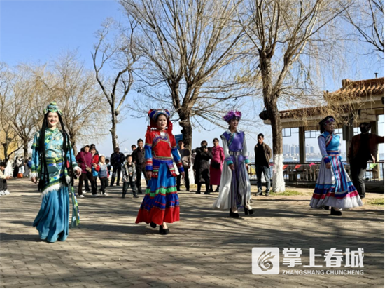 游客在滇池岸边“鸥”遇民族风 连呼“精彩”