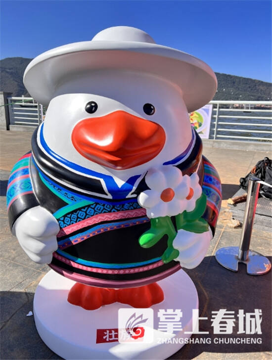 本次艺术装置展览,以40载人鸥情为载体,精心设计27只代表云南26个世居民族的红嘴鸥形象的玻璃钢装置。从民族图腾出发,“纹”以载道,以笔触诠释富有生命力的民族文化美学、焕新民族传统图案,为红嘴鸥穿上云南26个世居民族的精美服装,让来自西伯利亚的红嘴鸥融入云南的大家庭。