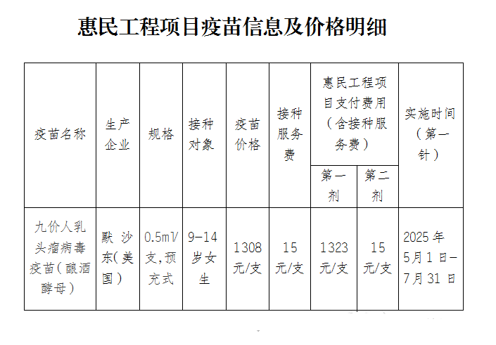 宫颈癌是目前唯一可以通过疫苗预防的癌症,而接种HPV疫苗则是预防宫颈癌发生的首道防线。武定县推出的此项惠民政策,采用九价人乳头瘤病毒疫苗(酿酒酵母),按照“0、6月”2剂次免疫程序,为适龄女性提供接种服务。政策实施时间为2025年5月1日至2026年1月31日,首针接种时间限定在2025年5月1日至7月31日 。值得关注的是,只要符合条件的9 - 14周岁女性在规定时间内完成全程免疫(即在2025年7月31日前接种第1剂次,满6个月后在2026年1月31日前接种第2剂次),即可减免第二剂次疫苗费用。此次项目共配备3000剂疫苗,可供1500人接种。