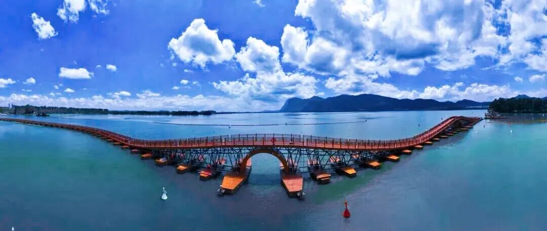开合浮桥采用开合式结构,开启时连通草海内海和滇池水域,方便船只通行;船只通过后可迅速闭合,恢复游人通行,连通草海东西岸。