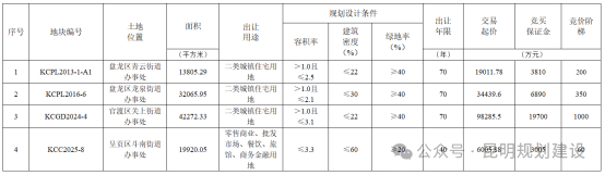12月22日,昆明4宗地块入市交易,总面积约162.1亩,最终均底价成交,共计实现收入约15.8亿元。