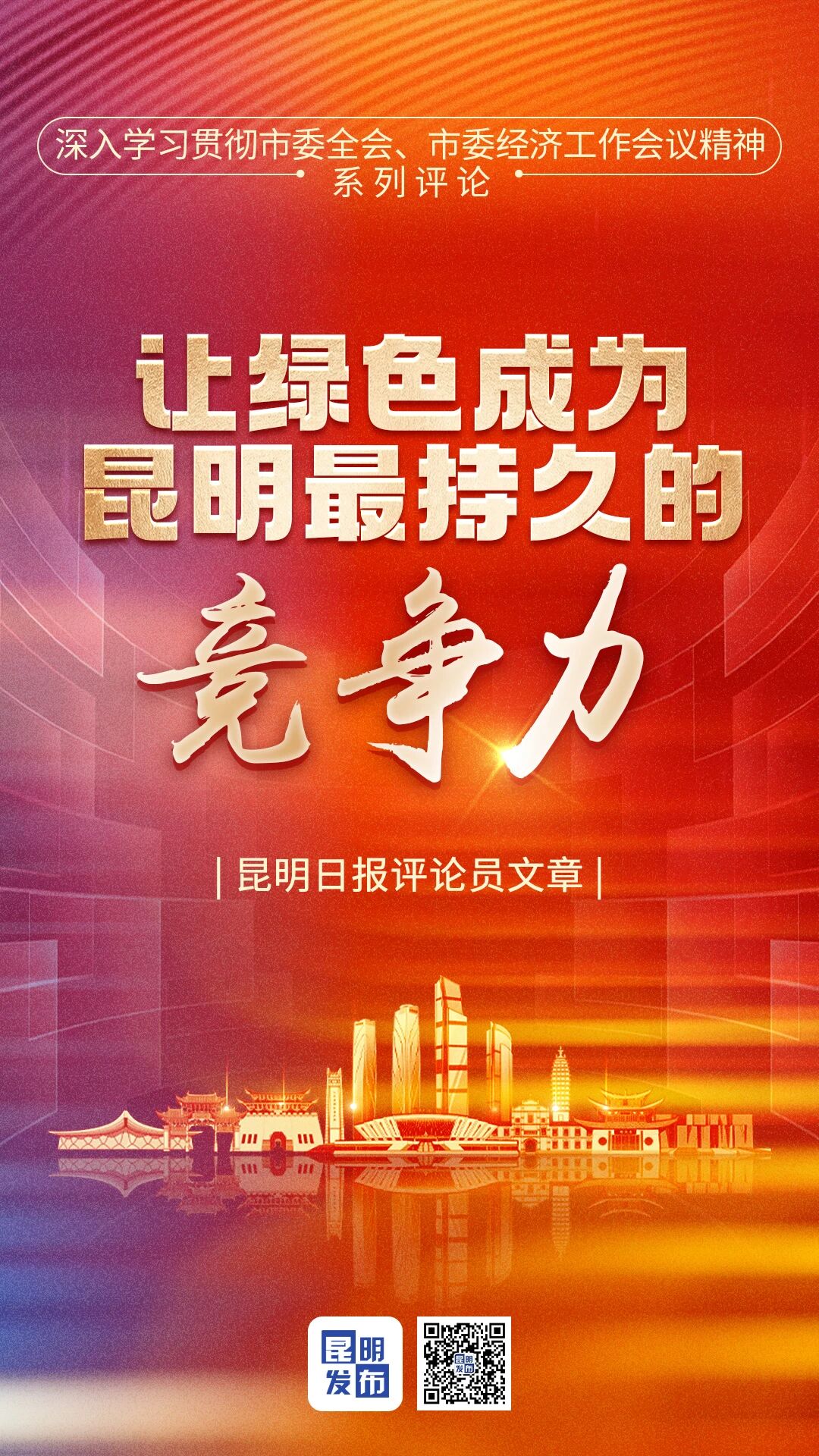 绿色是昆明最鲜明的底色,是高质量发展的坚实根基。市委十二届十次全会和市委经济工作会议部署重点工作时强调,要树牢绿水青山就是金山银山的理念,坚定不移走生态优先、绿色发展之路。新征程上,必须加快推动绿色低碳转型发展,持续描绘好生产发展、生活富裕、生态优美的和谐画卷。